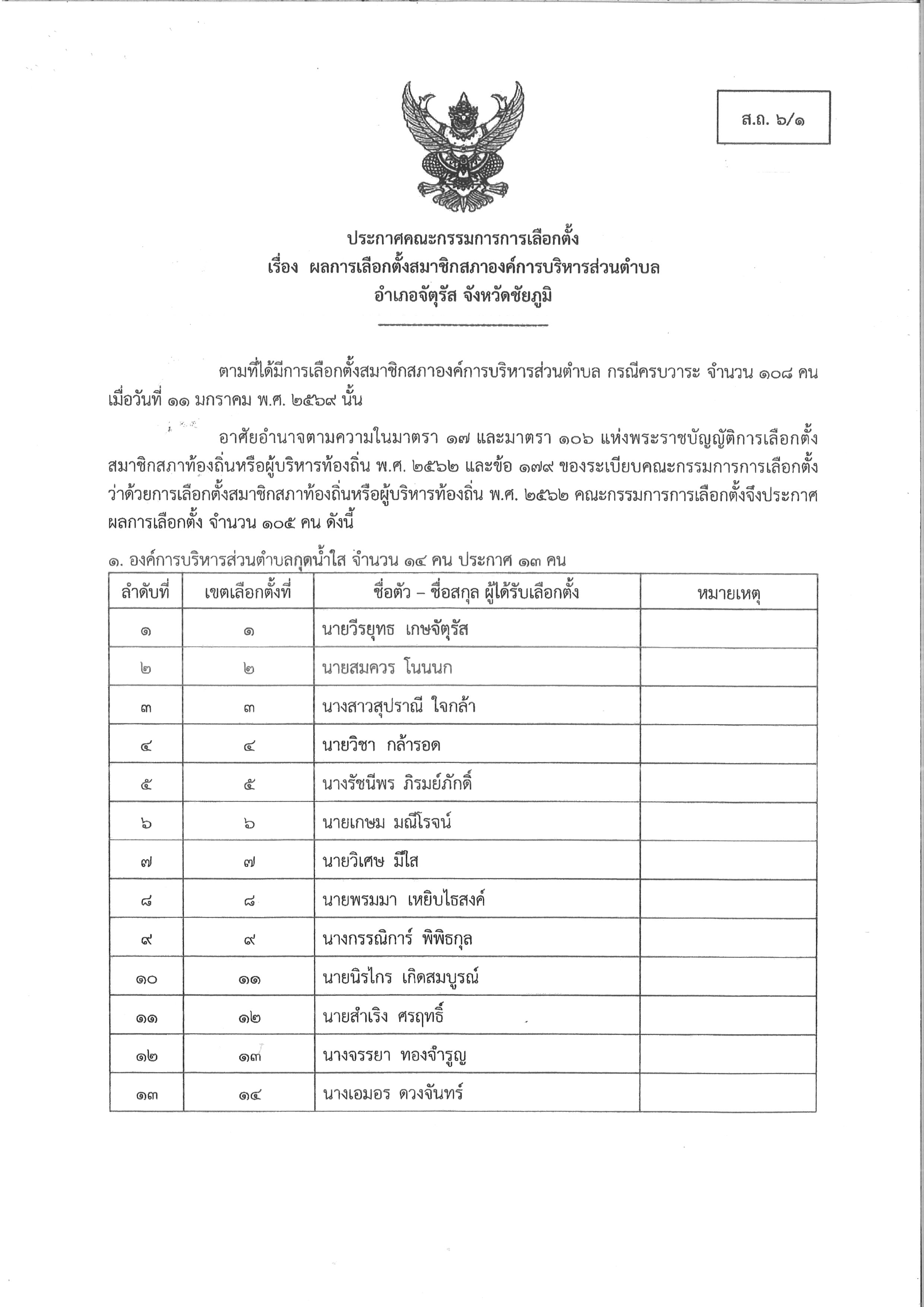 ประกาศคณะกรรมการการเลือกตั้ง เรื่อง ผลการเลือกตั้งสมาชิกสภาองค์การบริหารส่วนตำบล อำเภอจัตุรัส จังหวัดชัยภูมิ