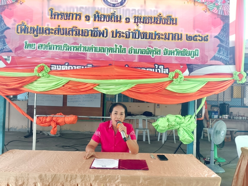 วันพฤหัสบดี ที่ 25 กันยายน 2568 เวลา 09.00 น.นางปรียา โพธิ์ชัย นายกองค์การบริหารส่วนตำบลกุดน้ำใส พร้อมคณะผู้บริหาร ปลัด รองปลัด ข้าราชการ และพนักงานจ้าง องค์การบริหารส่วนตำบลกุดน้ำใส เปิดโครงการ 1 ท้องถิ่น 1 ชุมชนยั่งยืน (ฟื้นฟู และส่งเสริมอาชีพ)ประจำปีงบประมาณ พ.ศ.2568 โดย องค์การบริหารส่วนตำบลกุดน้ำใส ตำบลกุดน้ำใส อำเภอจัตุรัส จังหวัดชัยภูมิ