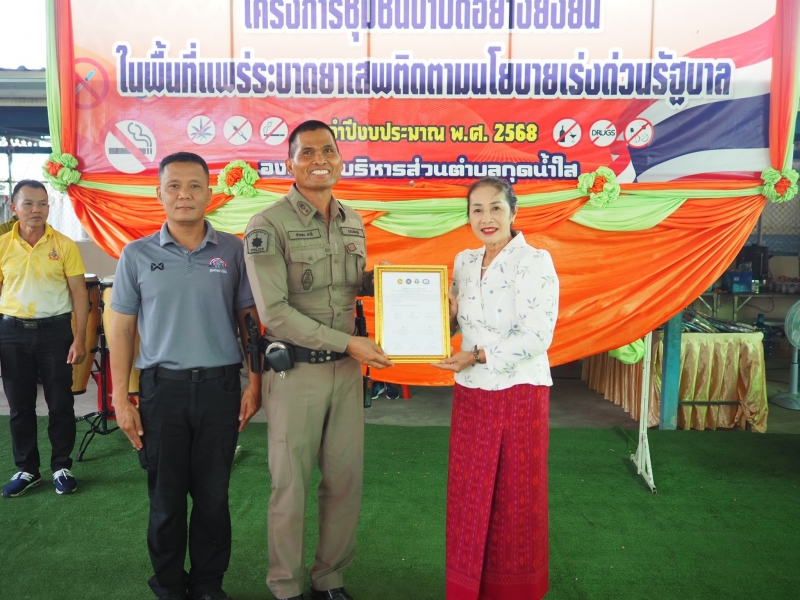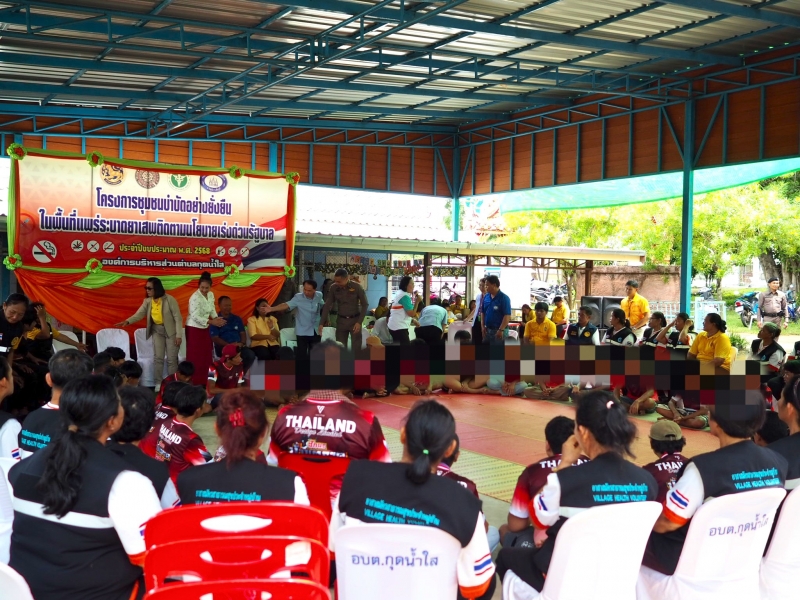 เมื่อวันพุธ ที่ 1 ตุลาคม 2568 เวลา 09.00 น.นางปรียา โพธิ์ชัย นายกองค์การบริหารส่วนตำบลกุดน้ำใส พร้อมคณะผู้บริหาร ปลัด รองปลัด หัวหน้าส่วนราชการ พนักงานจ้าง ผู้นำชุมชน 14 หมู่บ้าน อสม. หมู่ที่ 1 , หมู่ที่ 13 และสมาชิกสภาองค์การบริหารส่วนตำบลกุดน้ำใส ปิดโครงการชุมชนบำบัดอย่างยั่งยืน ในพื้นที่แพร่ระบาดยาเสพติด ตามนโยบายเร่งด่วนรัฐบาล ประจำปีงบประมาณ 2568 ณ วัดจำปาทอง บ้านตลาด ตำบลกุดน้ำใส อำเภอจัตุรัส จังหวัดชัยภูมิ