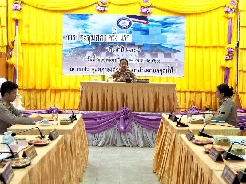 วันจันทร์ ที่ 23 กุมภาพันธ์ 2569 เวลา 13.30 น.องค์การบริหารส่วนตำบลกุดน้ำใส มีประชุมสภาองค์การบริหารส่วนตำบลครั้งแรก ณ หอประชุมองค์การบริหารส่วนตำบลกุดน้ำใส โดยมี นางสาววันเพ็ญ หาญเสมอ นายอำเภอจัตุรัส กล่าวเปิดประชุมสภาองค์การบริหารส่วนตำบลกุดน้ำใส ครั้งแรก และมี นางเบญจพรรณ ธรรมโชติ ปลัดองค์การบริหารส่วนตำบลกุดน้ำใส ทำหน้าที่เลขาสภาฯ(ชั่วคราว) สรุป ผลการประชุม และขอแสดงความยินดีกับนางรัชนีพร ภิรมย์ภักดิ์ ประธานสภาองค์การบริหารส่วนตำบลกุดน้ำใส นางจรรยา ทองจำรูญ รองประธานสภาองค์การบริหารส่วนตำบลกุดน้ำใส และนางเบญจพรรณ ธรรมโชติ เลขานุการสภาองค์การบริหารส่วนตำบลกุดน้ำใส ในครั้งนี้ด้วย