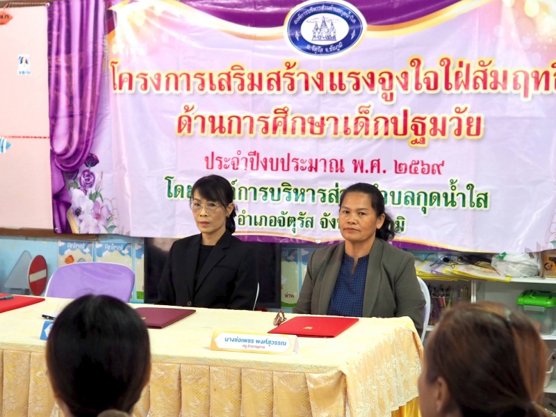วันพฤหัสบดี ที่ 12 กุมภาพันธ์ 2569 เวลา 09.00 น.นางเบญจพรรณ ธรรมโชติ ปลัดองค์การบริหารส่วนตำบลกุดน้ำใส ได้มอบหมายให้นางสาววราภรณ์ ปิ่นสุวรรณ นักวิชาการศึกษา รักษาราชการแทนผู้อำนวยการกองการศึกษา ศาสนา และวัฒนธรรม พร้อมด้วยเจ้าหน้าที่กองการศึกษาฯ และคณะกรรมการสถานศึกษาศูนย์เด็กพัฒนาเด็กเล็กบ้านร่วมมิตร เปิดโครงการเสริมสร้างแรงจูงใจใฝ่สัมฤทธิ์ด้านการศึกษาเด็กปฐมวัย ประจำปีงบประมาณ พ.ศ.2569